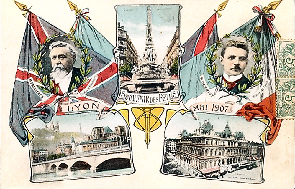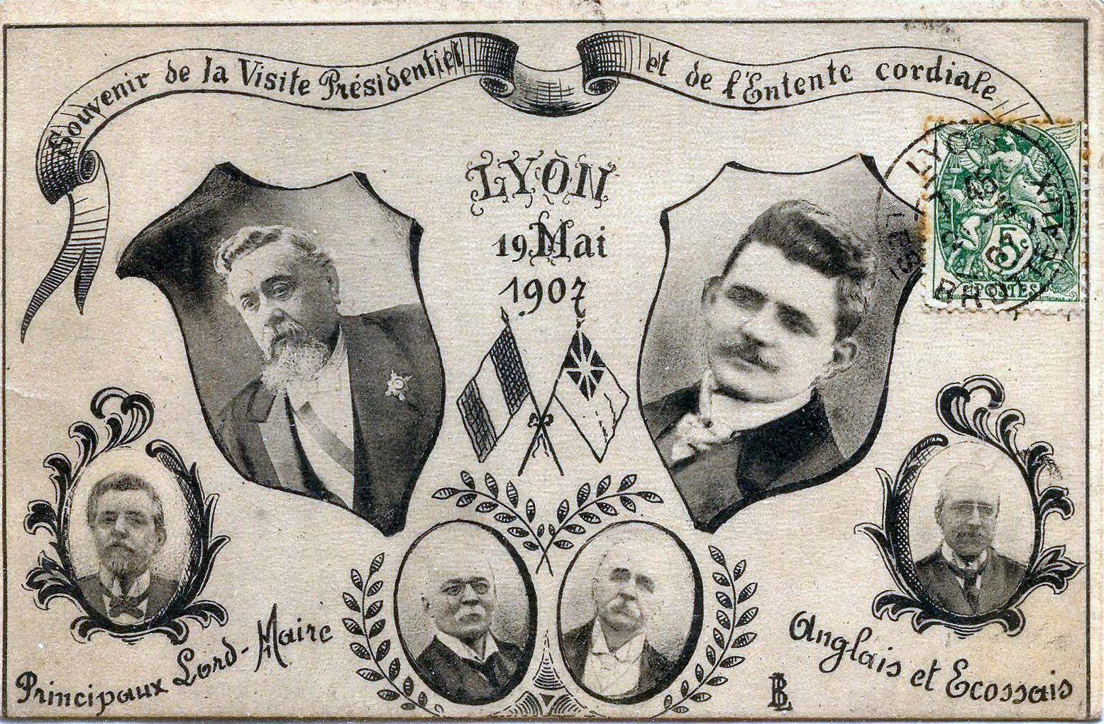 En cette période de la troisième République, appelée la 2ème Entente cordiale, la France et le Royaume-Uni se sont rapprochés en signant des accords bilatéraux en 1904, notamment sur le partage de l’Afrique. Les échanges commerciaux entre les deux pays se développent avec la participation bienveillante des responsables politiques. A tel point que dans les journaux on ne parlera que de la délégation anglaise et écossaise lors des fêtes de Lyon en mai 1907.