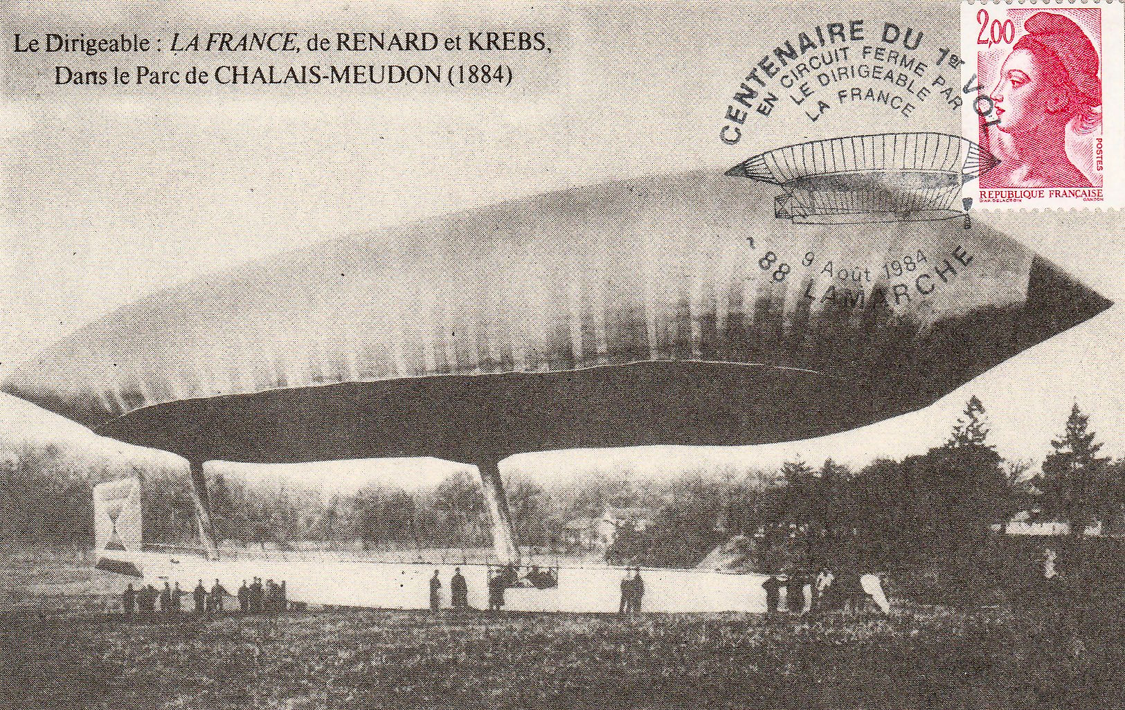 En 1879, il est chargé de diriger les travaux du premier ballon dirigeable français, le " La France ", qu’il conçoit avec Arthur Krebs, un officier allemand naturalisé français. Le " La France " est un ballon allongé de 52 mètres de long et de 8,5 mètres de diamètre, rempli d’hydrogène et muni d’une nacelle en aluminium. Il est propulsé par un moteur électrique alimenté par une batterie de 435 kg. Le 9 août 1884, Charles Renard et Arthur Krebs réalisent le premier vol circulaire d’un dirigeable, parcourant 8 km en 23 minutes en revenant à leur point de départ (voir vidéo en fin d’article).